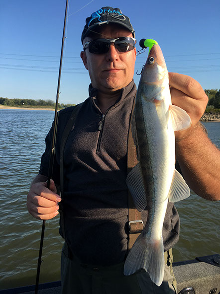 Ein abwechslungsreicher und spannender Tag liegt hinter uns. Den Anfang machte bereits morgens vor Abreise eine Reifenpanne. Die Überraschungen sollten sich dann im späteren Tagesverlauf noch häufen. Kurz nach dem Slippen fuhr sich mein "Stellvertreter" erst einmal geschickt auf einer Sandbank fest. Nachdem wir das Boot mit vereinten Kräften wieder befreien konnten um endlich mit dem Fischen zu beginnen der nächste Höhepunkt. Ein merkwürdiger Einschlag direkt unter dem Boot gefolgt von einem spektakulären Drill. Nach 10 Minuten stand fest...Auch Rapfen haben eine schwäche für vertikal geführte Gummi´s. Leider stieg das kapitale Exemplar kurz vor dem Keschern aus. Zu den Zandern und Barschen gesellte sich dann zum späten Nachmittag hin noch ein seltener Gast zu uns, welcher sich ebenfalls als Vertikal-Gourmet entpuppte. Mit insgesamt 30 Fischen beendeten wir unsere kleine "Raubfisch-Safari" und freuen uns schon auf die nächste Herausforderung.