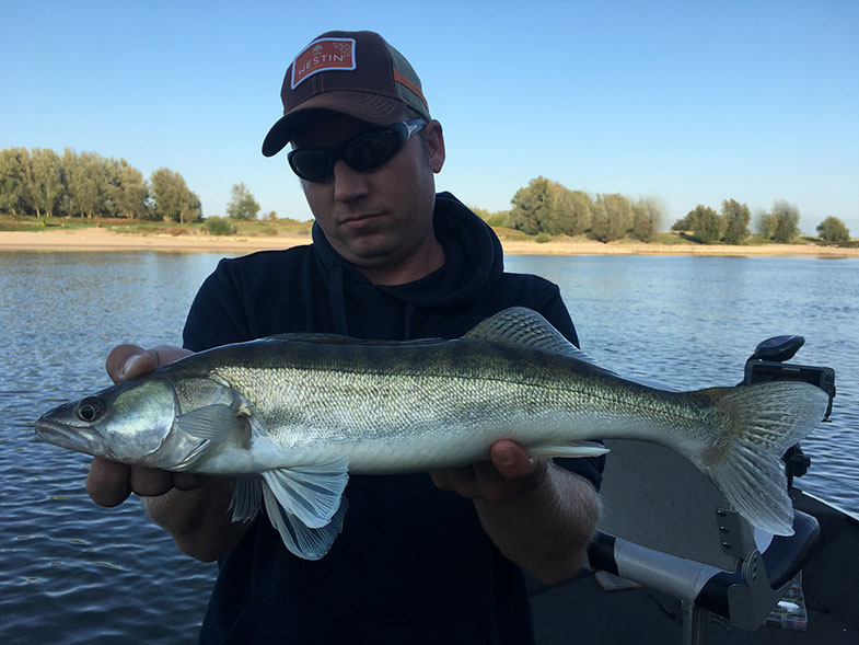Ein abwechslungsreicher und spannender Tag liegt hinter uns. Den Anfang machte bereits morgens vor Abreise eine Reifenpanne. Die Überraschungen sollten sich dann im späteren Tagesverlauf noch häufen. Kurz nach dem Slippen fuhr sich mein "Stellvertreter" erst einmal geschickt auf einer Sandbank fest. Nachdem wir das Boot mit vereinten Kräften wieder befreien konnten um endlich mit dem Fischen zu beginnen der nächste Höhepunkt. Ein merkwürdiger Einschlag direkt unter dem Boot gefolgt von einem spektakulären Drill. Nach 10 Minuten stand fest...Auch Rapfen haben eine schwäche für vertikal geführte Gummi´s. Leider stieg das kapitale Exemplar kurz vor dem Keschern aus. Zu den Zandern und Barschen gesellte sich dann zum späten Nachmittag hin noch ein seltener Gast zu uns, welcher sich ebenfalls als Vertikal-Gourmet entpuppte. Mit insgesamt 30 Fischen beendeten wir unsere kleine "Raubfisch-Safari" und freuen uns schon auf die nächste Herausforderung.