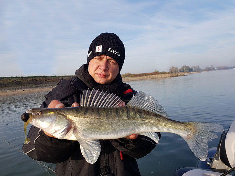 Mit 2 Gästen fuhr ich gestern auf das Gewässer, wo noch vor zwei Tagen ein regelrechtes Zandergewitter über uns hereinbrach. Doch diesmal war nichts mit Glanz & Gloria, diesmal war alles anders! Es lief sehr zäh und wir mussten uns jeden Fisch hart erkämpfen. Die ungewöhnlich niedrige Anzahl der Sicheln auf dem Sonar, reflektierte die schwache Biss-Frequenz, uns so entschied ich mich für einen Spot-wechsel und wagte einen restart. Die neue Location versprach Optisch eine Menge und es sollten keine 5 minuten vergehen bis wir die ersten Rückmeldungen bekamen. Wir fischten uns dann den restlichen Nachmittag bis auf 34 Fische und waren am Ende mit dem Ergebnis mehr als Zufrieden. Mich persönlich freut es am meisten, das ich wieder neue Leute für die Faszination Vertikal-Angeln begeistern konnte.